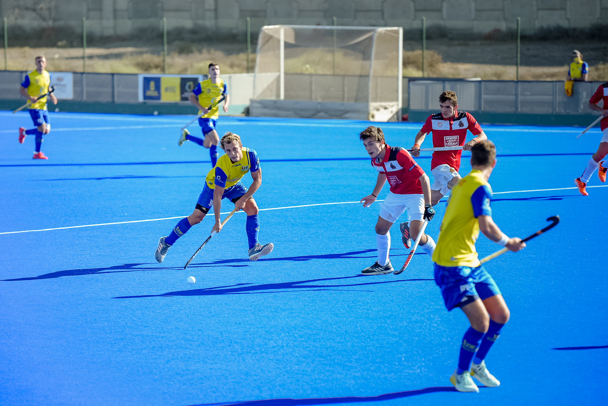 En el minuto 59 llegó el único penalti-córner del choque para los visitantes. Álvaro Badrinas buscó la escuadra derecha de la portería grancanaria y no la encontró por apenas unos centímetros.