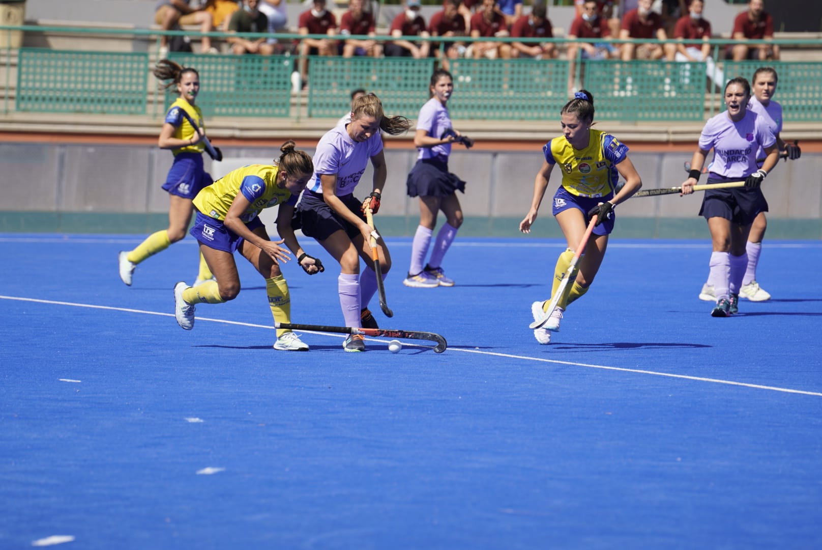 Las pupilas de David Quintana y Luis Colorado lograban imponer su ritmo al partido desde el primer segundo de encuentro, forzando el primer penalti córner a su favor a los 4 minutos que era despejado por la cancerbera culé, Andrea Martínez.