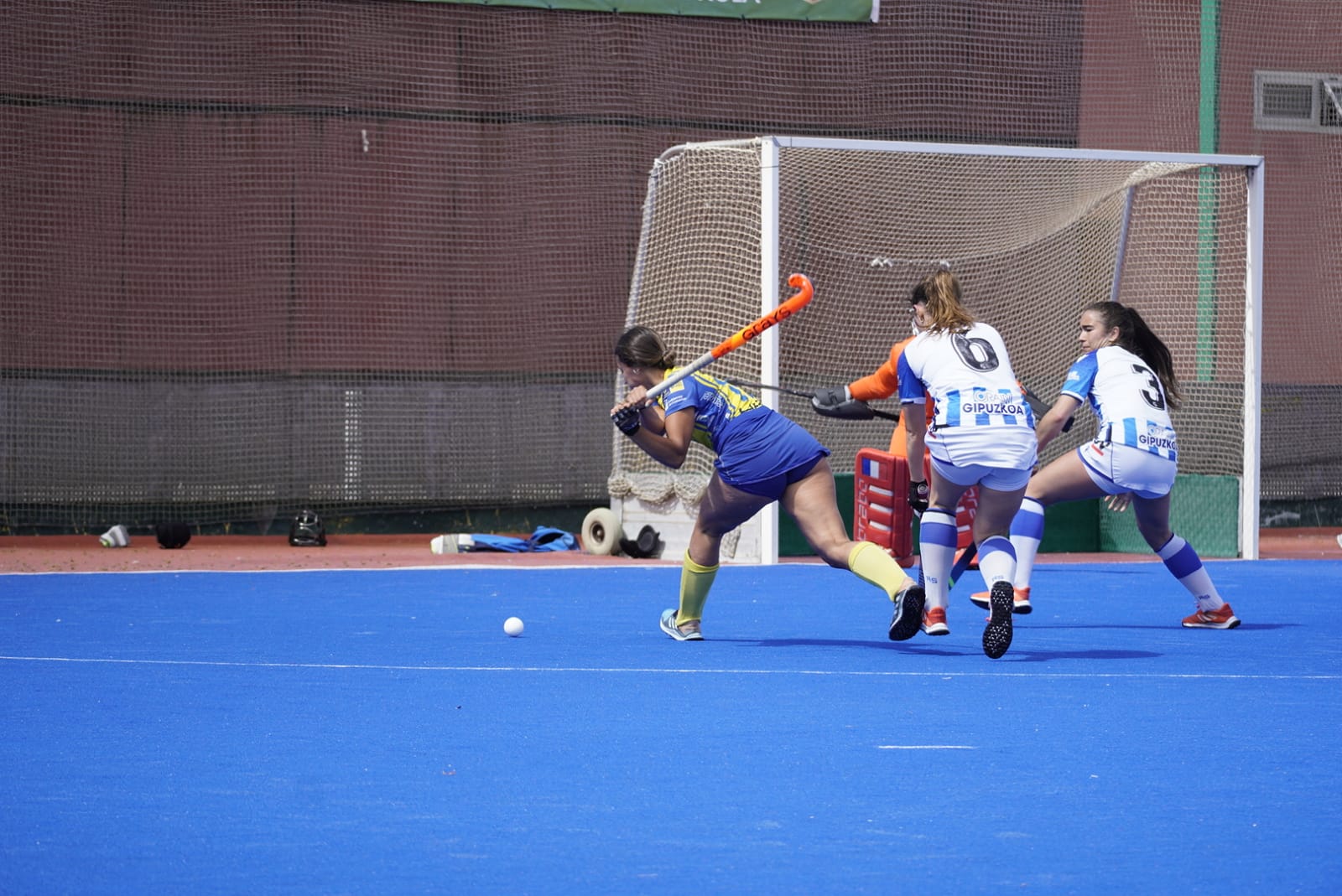El encuentro cada vez estaba más igualado. El cuadro blanquiazul también quería llevarse la victoria. En defensa las amarillas estaban cuajando una magnífica actuación. Los ataques eran el problema, no conseguían derribar la barrera vasca. El juego comenzaba a desarrollarse cada vez más en el centro del campo. En una gran acción de la UD Taburiente, las amarillas remataron golpeando al palo. Las jugadoras de David Quintana estaban decididas a llevarse la última victoria de la temporada y no iban a dejar de intentarlo. Las fuerzas se mantenían intactas, llegando continuamente al área de su contrincante y sacando penalty corner, pero nada era suficiente.