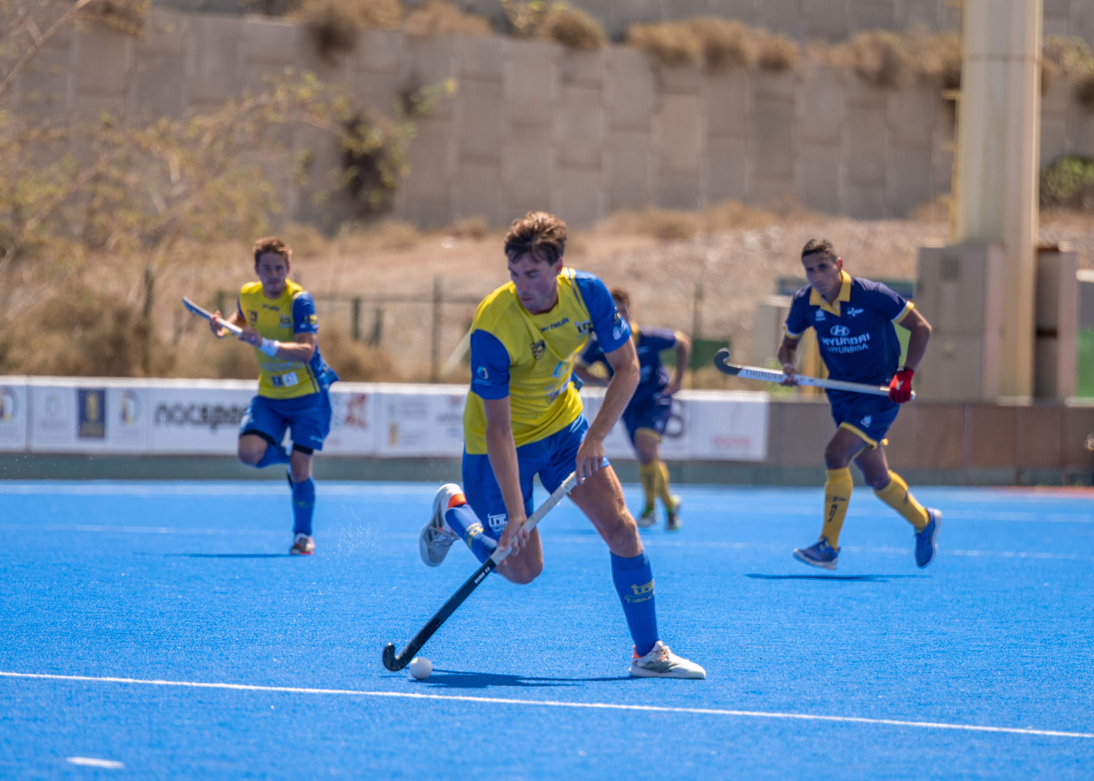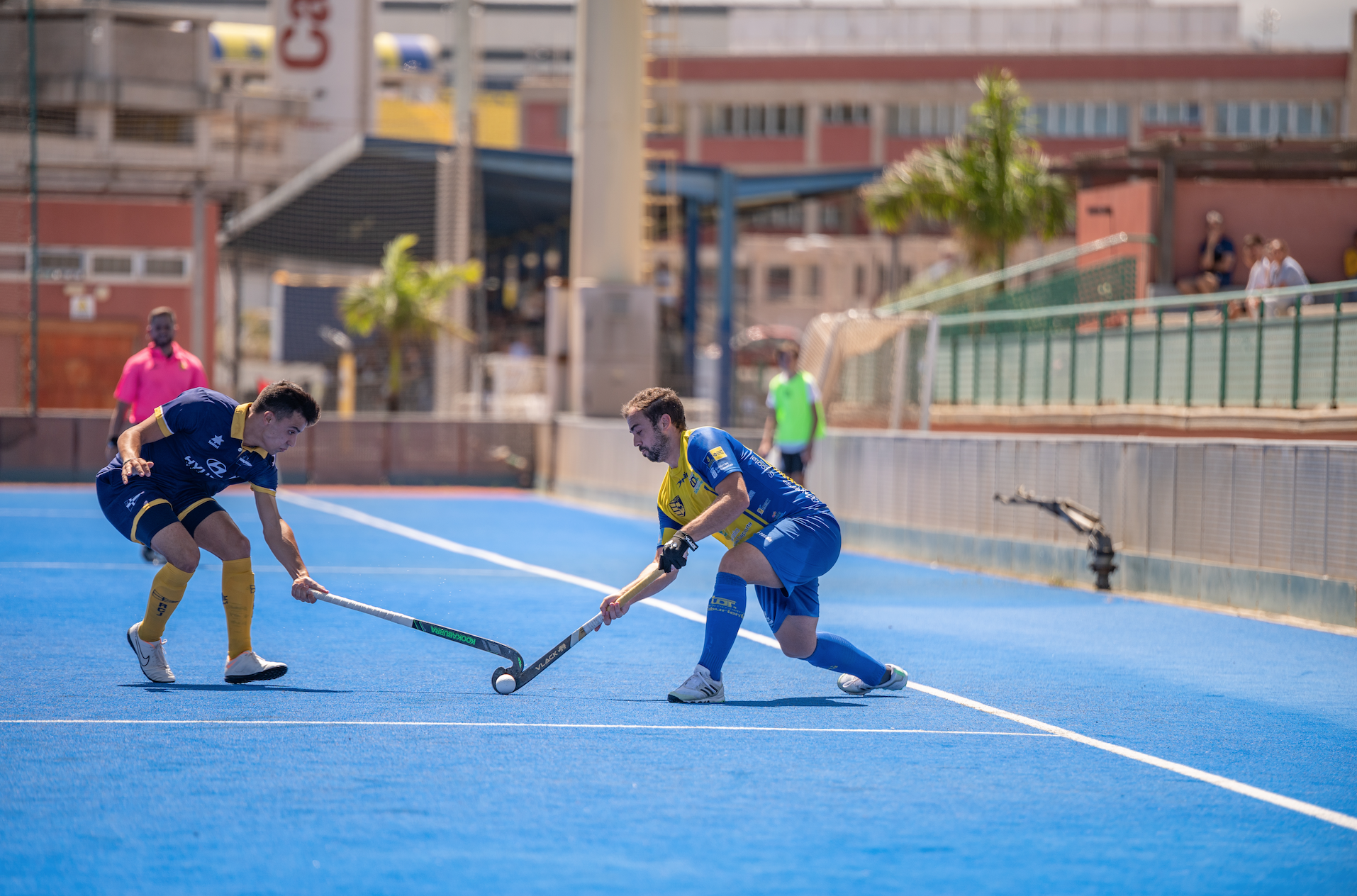 El Taburiente arrancaba el partido con mucha intensidad, decidido a llevarse el encuentro cuanto antes. Tan solo dos minutos después del inicio del choque, los pupilos de Suso Martín conseguían forzar un penalti córner sin obtener resultado. Tras unos frenéticos minutos del conjunto amarillo, la igualdad empezaba a imponerse en el anexo de 7 Palmas. Ambos conjuntos movían muy rápido la bola intentando llegar al área contraria. El combinado vasco ejercía mucha presión en las salidas del área amarilla. La UD Taburiente conseguía superar la presión vizcaína y llegar a su área cuajando una ocasión clara que se iba a córner.